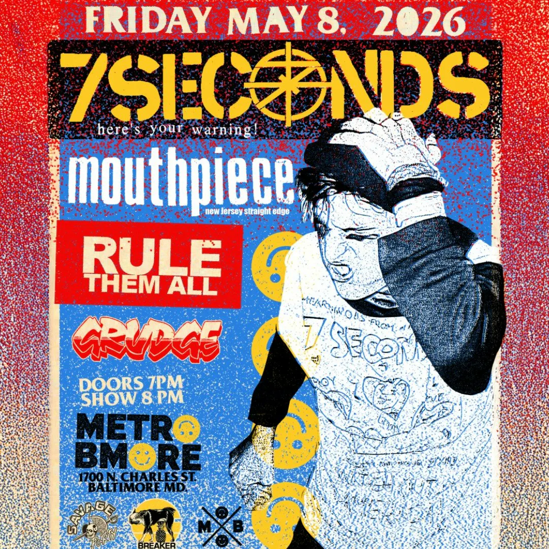 Savage Party x Breaker Island Present: 7SECONDS with Mouthpiece, Rule Them All and Grudge Friday May 8, 2026 Doors at 7:00 PM, Show at 8:00 PM All Ages Presented by Metro Gallery LLC. All Ages
