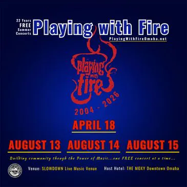 Playing with Fire bridges communities through the power of music. Our mission as a 501(c) (3) non-profit organization is clear: to champion local non-profits and foster connections between people worldwide, all through the magic of free live music concerts. At Playing with Fire, we believe in the transformative power of music to unite, inspire, and uplift. Through our events, we bring the world to Omaha while sharing the spirit of Omaha with the world. Each concert features extraordinary, award-winning musicians from around the globe, offering unforgettable experiences for our local community and fans worldwide. Join us in our journey to celebrate diversity, support local causes, and create lasting bonds through the universal language of music. Together, we're igniting passions, breaking down barriers, and spreading joy – one free concert at a time.