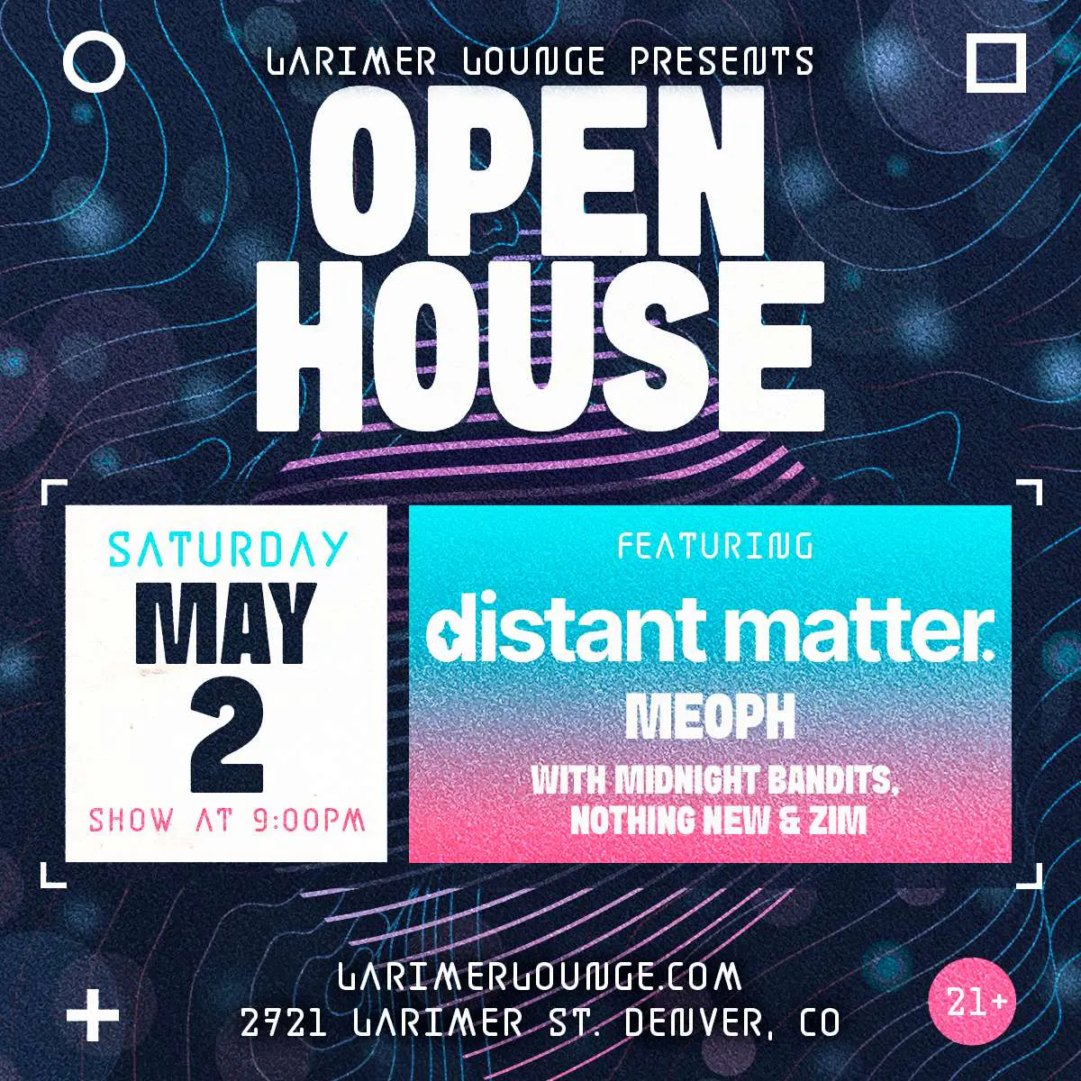 Larimer Lounge presents Open House Featuring Distant Matter and Meoph with Midnight Bandits, Nothing New and Zim on Saturday, May 2 --