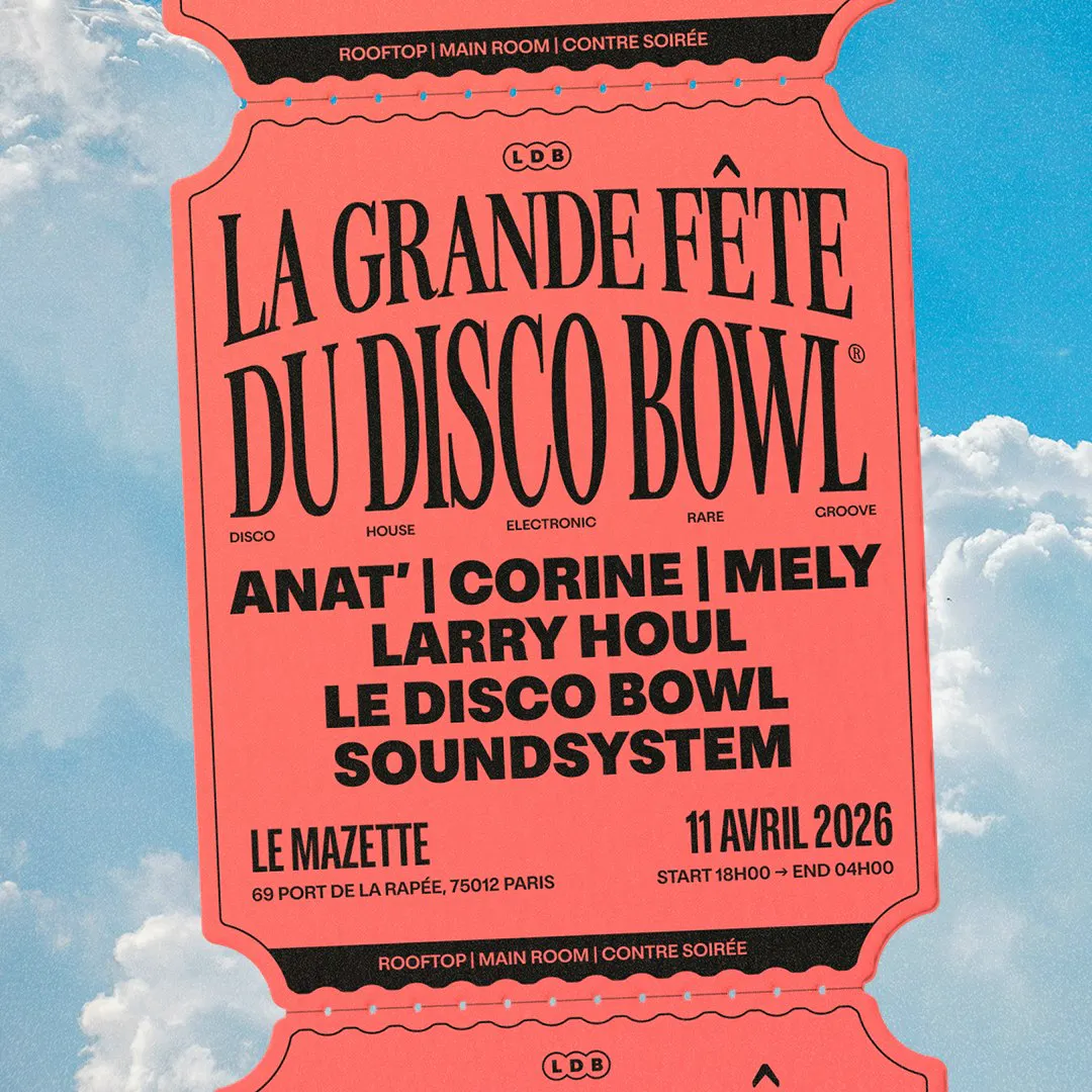 Le samedi 11 avril, le Disco Bowl prend les commandes de la Grande Fête du Mazette avec ce qu'ils savent faire de mieux ensemble : la fête !!!!
