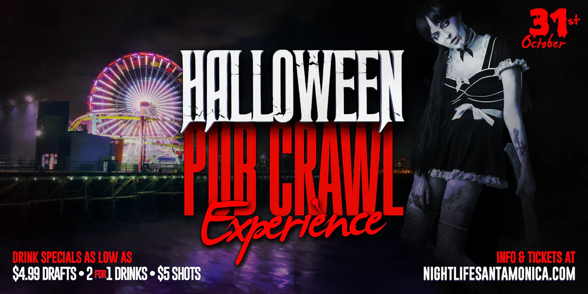 Enjoy a spook-tacular Halloween night out with drink specials at the biggest and best Pub Crawl Santa Monica has to offer on October 31st.