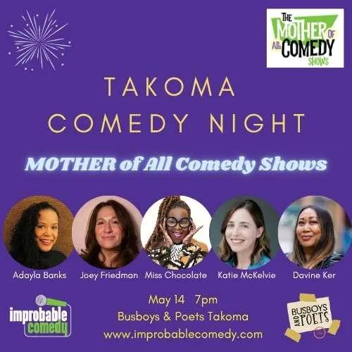 MOTHER of All Comedy Nights is part of Improbable's series, Takoma Comedy Night, at Busboys and Poets Takoma. Each month we bring a great chance for laughs and fun for the community. It feels good to laugh and we promise to deliver. Join us at one of our upcoming shows: