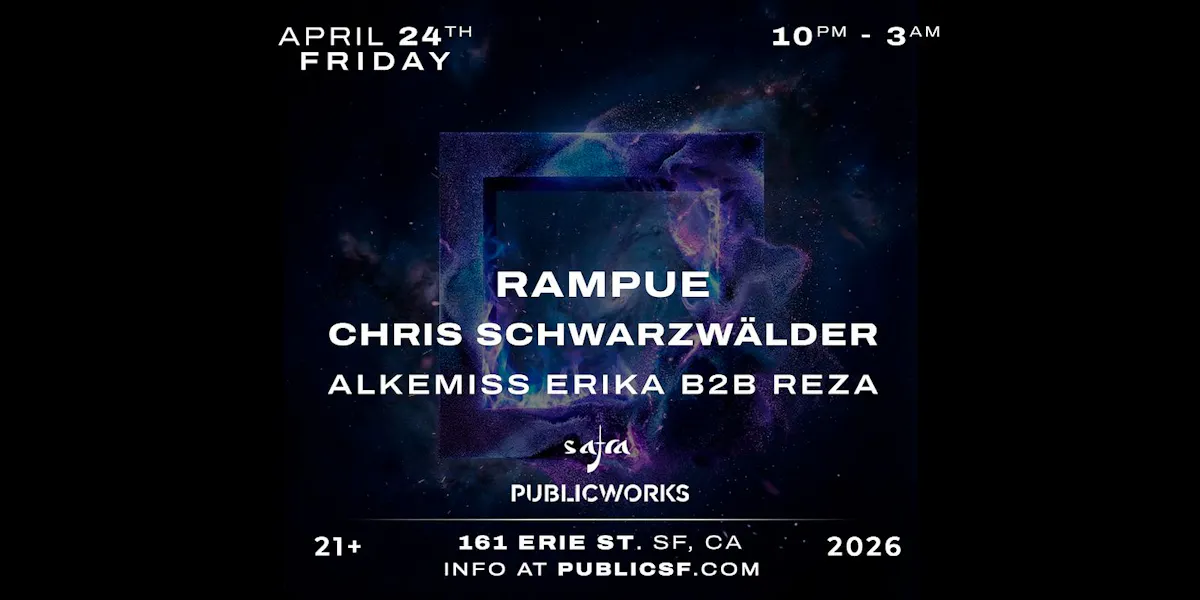 Berlin's Rampue brings his dreamy, genre-defying sound to Public Works for a night of deep, emotive electronic music. Known for weaving together deep house, ambient textures, and slow-burning disco into richly layered sets, Rampue has spent over a decade carving out a singular lane in Berlin's underground — from Kater Blau to stages at Lightning in a Bottle and Hi Ibiza. Expect a warm, hypnotic journey through lush soundscapes that hit somewhere between the dancefloor and a daydream.