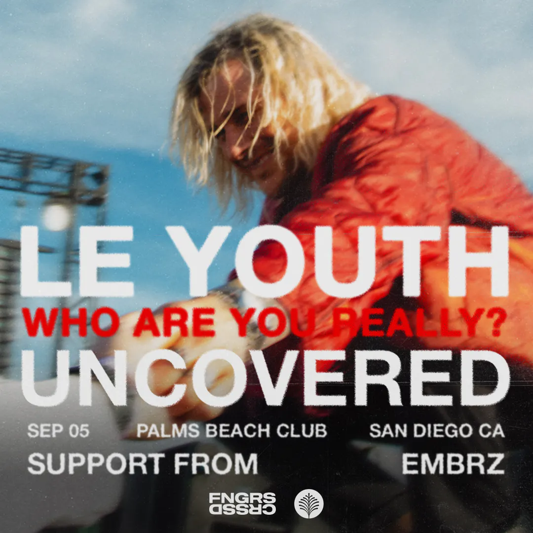 FNGRS CRSSD presents LE YOUTH + EMBRZ at Palms Beach Club September 5, 2026 LE YOUTH EMBRZ 21+ Doors 4PM - - - - - - - - - - - - - - - - - - - - - - - - - - - - - - - - - - - - - - - - - - - LE YOUTH Instagram: https://www.instagram.com/leyouth/ Facebook: https://www.facebook.com/LeYouth/ Spotify: https://open.spotify.com/artist/1Zz6NBe8UIZjm88TvehFtx?si=nGiotEiOSMyUieiYP5VVTg FNGRS CRSSD Facebook: www.facebook.com/FNGRSCRSSD Instagram: www.instagram.com/fngrscrssd Twitter: www.twitter.com/FNGRSXCRSSD Website: www.CRSSD.com
