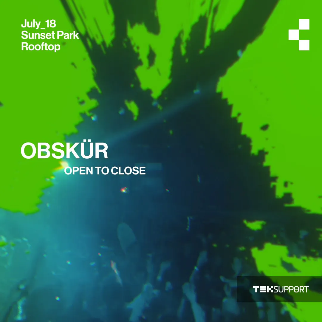 July 18: Sunset Park Rooftop Obskür (open to close) Doors 11pm Table Reservations: WhatsApp: +1 (718) 614-2563 Email: info@tcepresents.com Presented by Teksupport. This is an 21+ event