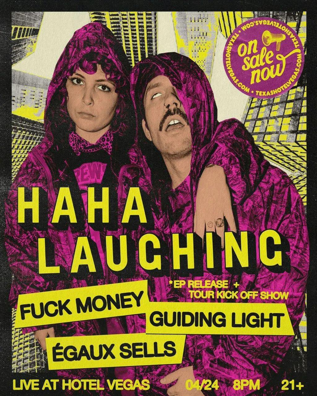 haha Laughing EP Release + Tour Kick Off Show - Live at Hotel Vegas with Fuck Money, Guiding Light & Égaux Sells Presented by Hotel Vegas. This is an 21+ event