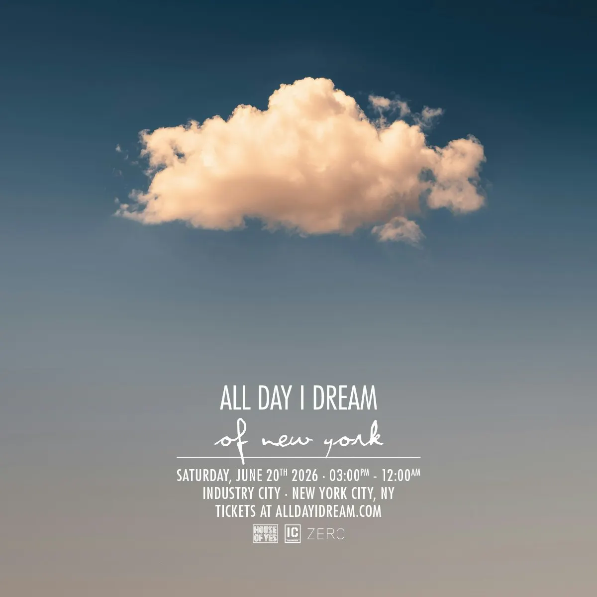 **ALL DAY I DREAM OF NEW YORK** **JUNE 20TH - INDUSTRY CITY** **LEE BURRIDGE + MORE TBA** Presented by All Day I Dream. This is a 21+ event