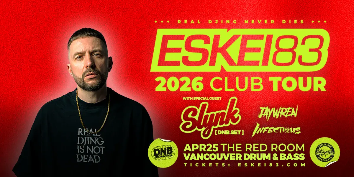 Digital Motion proudly presents SUBculture Saturdays 4.25.2026 A former DJ World Champion turned drum & bass powerhouse, ESKEI83 leads a new movement proving one thing — Real DJing Never Dies. We're excited to host international DJ and Producer Eskei83 for the very first time in Vancouver! We've also got SLYNK coming in for an exclusive Drum and Bass set on the baddest system in town! If you love DnB Music and DJ culture... you won't want to miss this night representing all styles and flavours we all know and love via PK SOUND. Lineup: ESKEI83 [Real DJing Never Dies, Monstercat, Viper Recordings, Deadbeats - Germany] https://eskei83.com https://soundcloud.com/eskei83 https://www.instagram.com/eskei83 “There is no one like him in the DnB world right now.“ A former DJ World Champion turned drum & bass powerhouse, ESKEI83 leads a new movement proving one thing — Real DJing Never Dies. Having conquered the turntablism circuit, becoming the first ever German to win the Red Bull 3Style World DJ Championships, he’s now redefining what a modern DnB performance can look like. His sets are explosive journeys of live remixing, scratching, and mashups — bridging underground energy with crossover appeal. When ESKEI83 steps behind the decks, every transition is a moment, every drop a statement. Supported by heavyweights like Pendulum, Luude, Koven, Kanine, Zeds Dead, and ShockOne, ESKEI83’s productions merge technical precision with festival-level energy. With releases on Monstercat, Viper Recordings, and Zeds Dead’s Deadbeats imprint, he has become one of Europe’s most forward-thinking and versatile DnB exports — bridging the gap between high-energy performance DJing and cutting-edge production. His viral live edits and mashups have taken social media by storm, amassing millions of views and inspiring a new generation of DJs and fans alike. From headline performances at Tomorrowland, Rampage, Parookaville, Electric Love, Nature One, and clubs across the globe — from Japan to Canada — to his upcoming “Real DJing Never Dies” tour, ESKEI83 continues to push the boundaries of what a DJ can be. With his upcoming singles “More Fire” (Dark Machine Records), “Take You Home” (DnB Allstars), and “Trigger Finger” (Liquicity / Ridmic), ESKEI83 is set to prove once again that technical mastery and raw energy can coexist — and that in 2025, real DJing is more alive than ever. His recent single “Good Time” gained international attention, landing in Spotify’s flagship playlist Massive Drum & Bass, further solidifying his position as one of the most innovative and crowd connecting DnB artists of today. with special guest: SLYNK [DNB SET - Vancouver] https://slynk.net https://www.instagram.com/evanslynk https://linktr.ee/slynk with local support from JAYWREN https://linktr.ee/jaywren INFECTIOUS [Whistler Junglists] https://www.instagram.com/infectiousdnb/ The Red Room PK Sound system will be in place for a proper bass & electronic music experience. Hearing protection is strongly advised. Our high fidelity, reusable ear plugs will be available for purchase at coat check or at our apparel table if you need. Doors open at 10:00pm sharp! Open and serving Music, good vibrations and drinks until 3am. Plan accordingly, arrive early to avoid the line and to support all of the artists on the lineup. 19+ only w/ 2 pieces of valid ID to enter ★ Mature PLUR vibes ★ Please respect the venue, your neighbours & party responsibly. Big thanks to everyone coming down early to set the vibe! *Harm reduction and extra support will be available via our SAFEculture team all night* Please read through our code of conduct before buying tickets and attending our events --> https://digitalmotionbc.ca/code-of-conduct