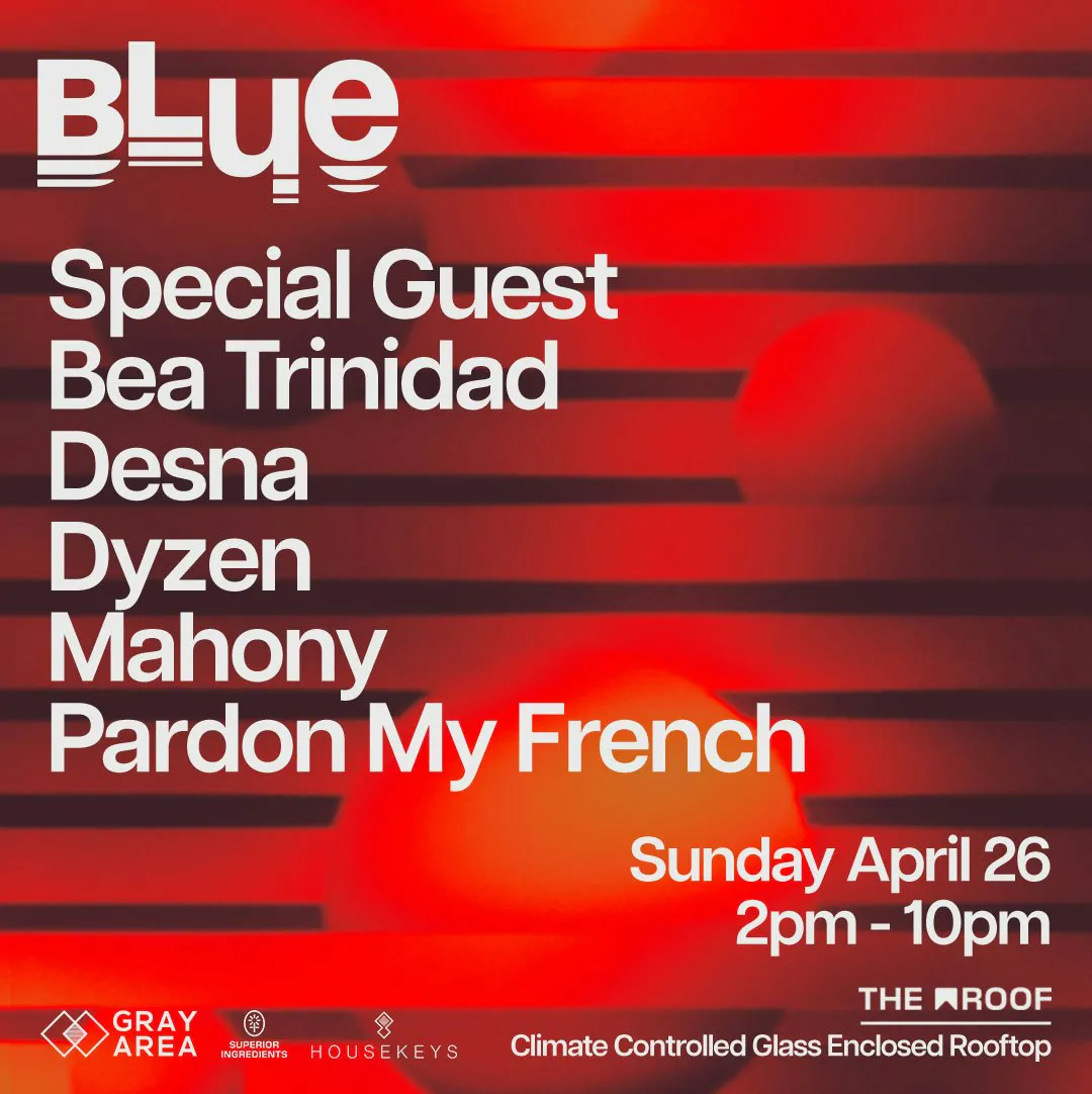 On Sunday, April 26th, get ready for a special guest to take over the roof for our beloved BLUE series. Joined by DESNA, Dyzen, MAHONY, Pardon My French, and Bea Trinidad, the party returns for another day into night gathering overlooking the water.