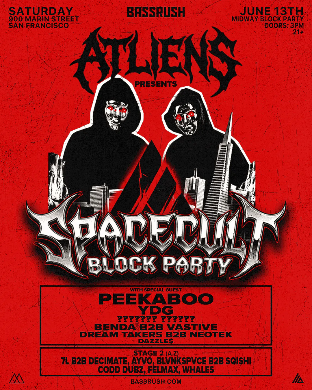 The Midway SF x Bassrush Present: ATLiens Peekaboo YDG Benda b2b Vastive Dream Takers b2b Neotek Dazzle$ The Midway - Block Party 21+ Event 900 Marin Street SF