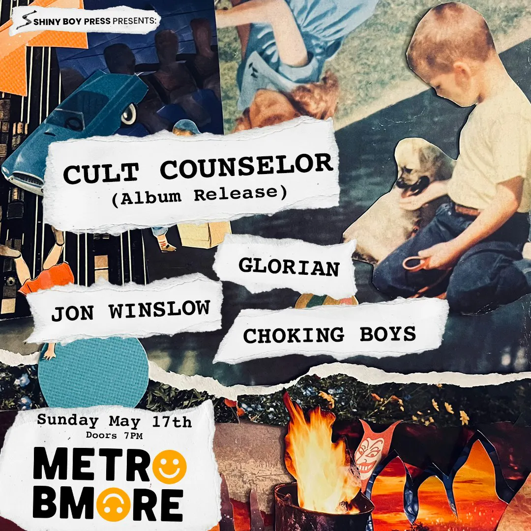 Shiny Boy Press Presents: CULT COUNSELOR Album Release Show with Glorian, Choking Boys and Jon Winslow Sunday May 17, 2026 Doors at 7:00 PM, Show at 8:00 PM All Ages Presented by Shiny Boy Press All ages