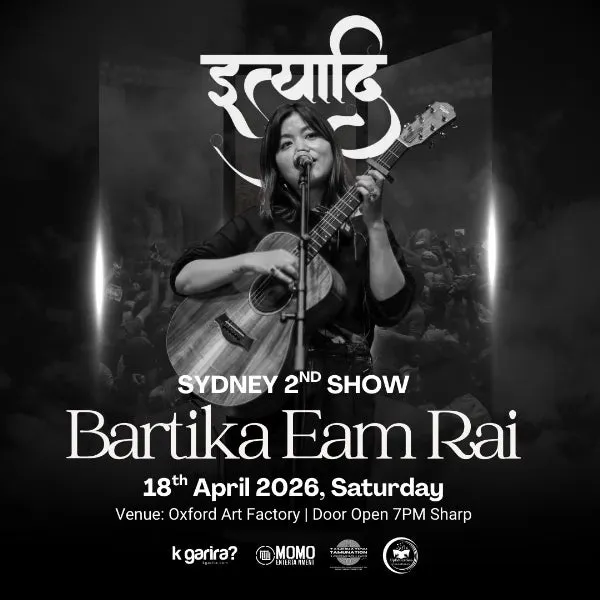 Following the overwhelming response to her sold-out tours across Canada and Nepal, Bartika Eam Rai is bringing her deeply moving musical journey to Australia with her much-anticipated ITYAADI Tour. Known for her poetic storytelling, mesmerising vocals, and intimate live performances, Bartika and her band promise an unforgettable evening of music that feels both personal and powerful. ITYAADI is more than a concert — it’s a shared experience of stories, memories, and emotions that connect us all. Don’t miss the chance to witness her magic live. Secure your tickets now and be part of a night that will stay with you long after the last note fades.