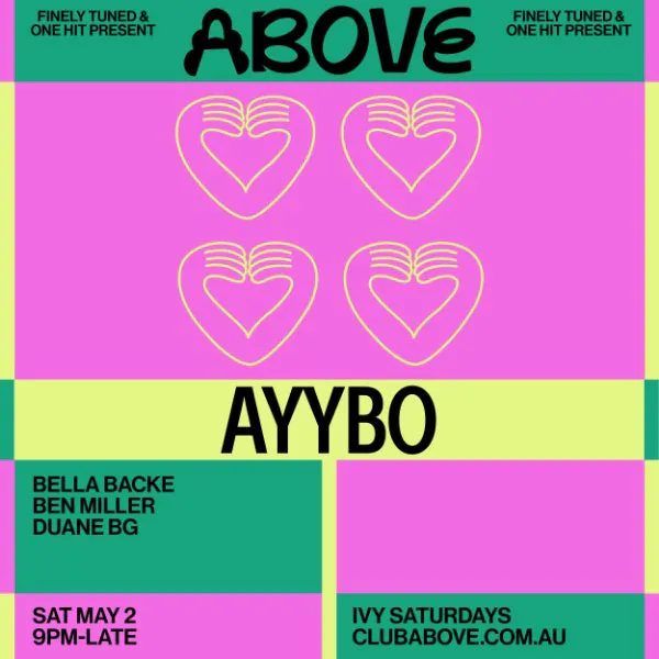 JUST ANNOUNCED: AYYBO lands at ABOVE on Saturday, May 2.