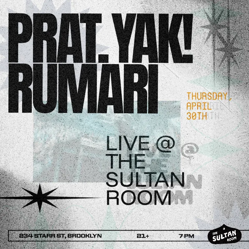 ***prat., Yak!, Rumari*** Presented by The Sultan Room. This is a 21+ event