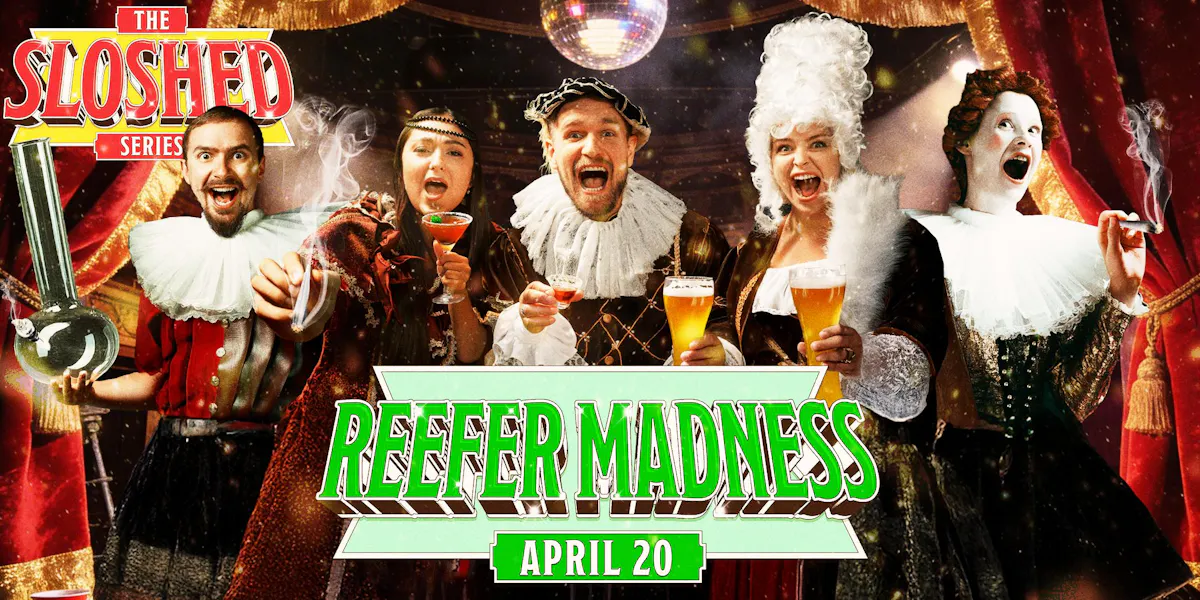 Drunk theatre meets 4/20 chaos—Slosh Series' Reefer Madness performed by a partially wasted cast. Wild, interactive, unpredictable fun.