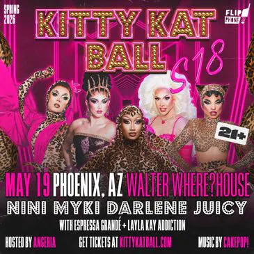 Kitty Kat Ball is a purr-fectly fierce drag extravaganza starring RuPaul’s Drag Race’s Nini Coco, Darlene Mitchell, Juicy Love Dion, and Myki Meeks. Hosted by All Stars winner, Angeria Paris VanMichaels. Expect a gag-worthy evening of lip-syncs, couture, comedy, and drag. It’s glam, it’s camp, and it’s giving nonstop meow-ment after meow-ment!
