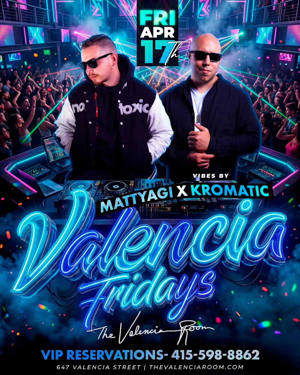 VALENCIA FRIDAYS - Hip Hop in the Mission! Tap in for VIP Reservations early. Pop out and party with us!