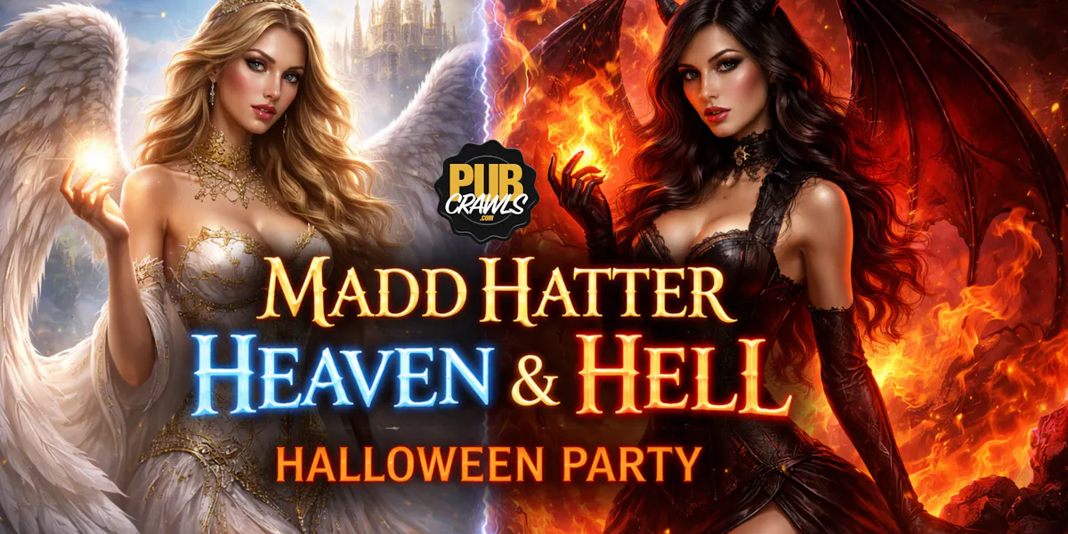 Madd Hatter Hoboken Heaven and Hell Halloween party is back on October 24th, 2026! Party with angels and devils for this themed event!