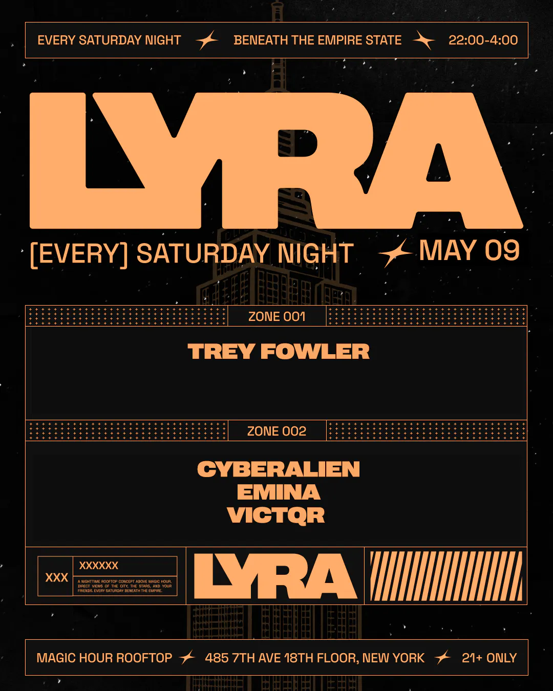 Introducing Lyra - a new rooftop party concept redefining Saturday nights in NYC. Perched beneath the Empire State Building with a retractable roof and panoramic skyline views, Lyra delivers two immersive zones of high-energy sound and atmosphere.