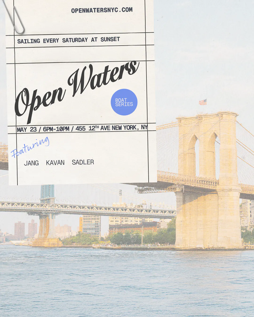 Join us every Saturday at sunset for an unforgettable evening on the Hudson River. Departing from Pier 78, experience golden hour views, great music, and an elevated on-the-water vibe as day turns to night.
