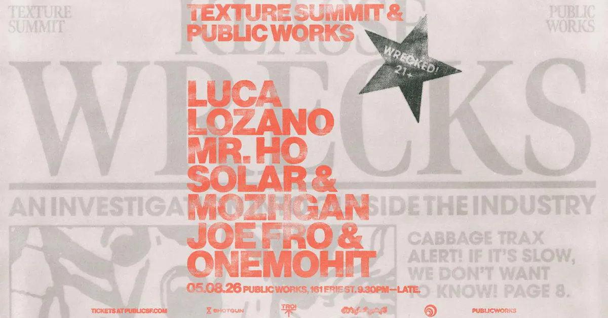 Klasse Wrecks returns to San Francisco, with Luca Lozano & Mr. Ho back at the controls, bending the room into something slightly off axis and fully locked in. Last time they rolled through, the room was fully upside down, and we have not been able to sit still since.