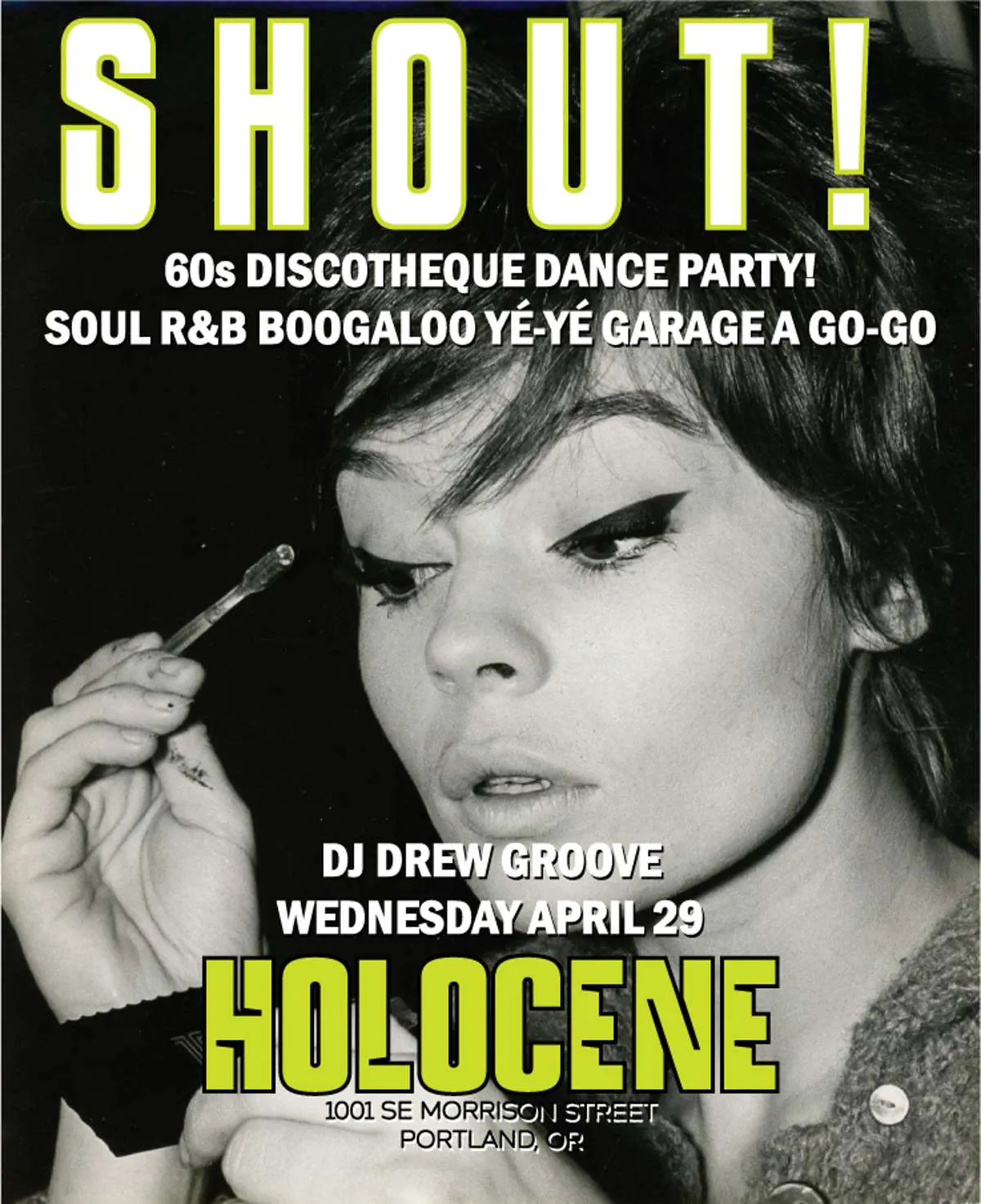 SHOUT! 60s Dance Party! The Way Out & Wildest in Hip Shakin' Soul, Garage, R&B, Boogaloo, British Invasion, French Pop, Go-Go Beat and Other Swingin' Discotheque Dance Sounds! Come on out, Shimmy, Shake, Twist and Shout!