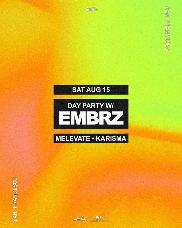 EMBRZ embarks a limited run of day time shows this Summer. We're excited to host him at Audio on Aug. 15th. Support Melevate Karisma 21+