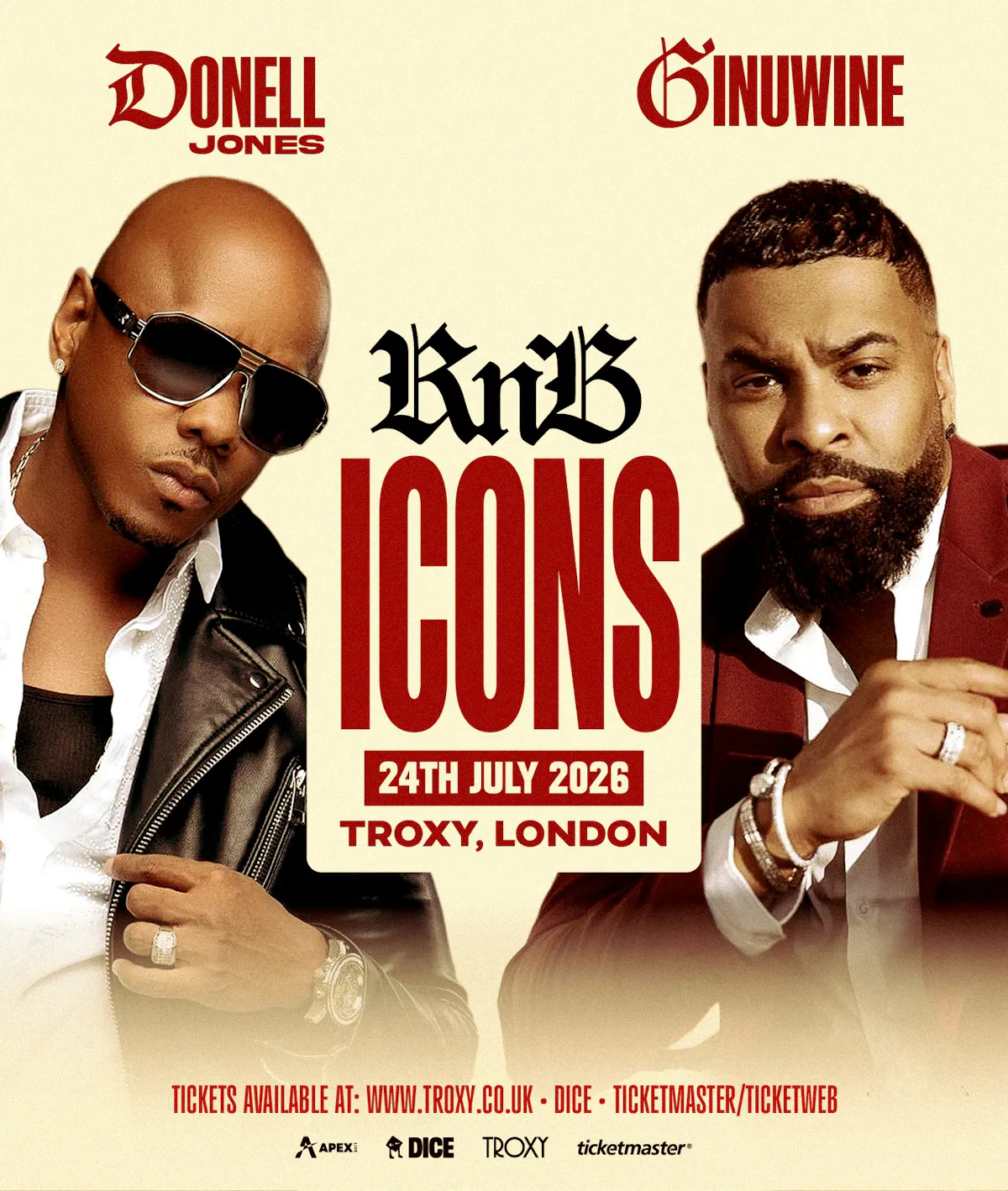 R&B icons Donell Jones and Ginuwine head to London’s Troxy for one unforgettable R&B concert experience.