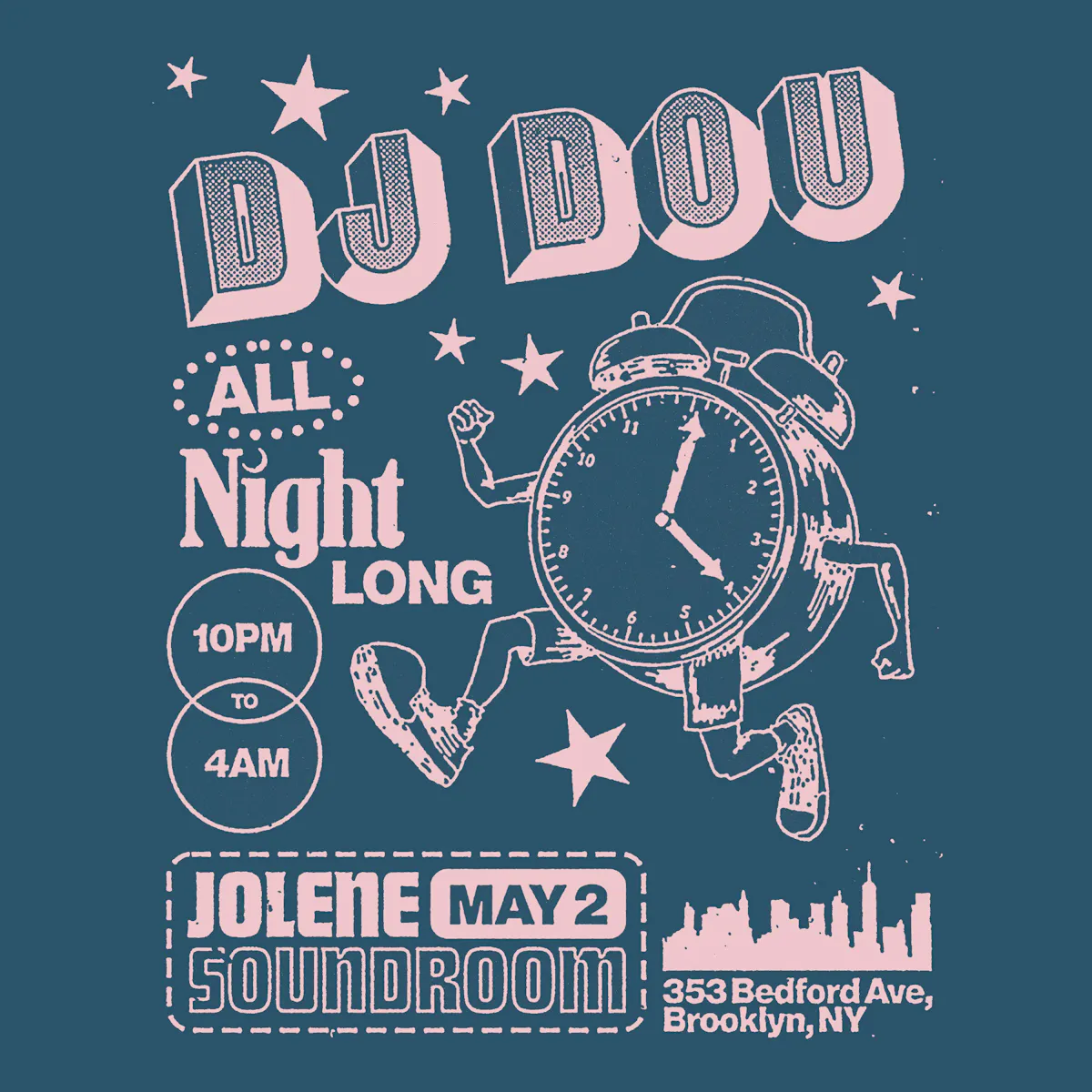 Join us at Jolene Soundroom on **May 2nd** for an all-night-long DJ set, taking you on a musical journey from house to UKG, dembow to disco, and so much more. Having rocked clubs in London, NYC, and just wrapped up an Australia tour, DJ DOU is ready to keep you moving from open till close.
