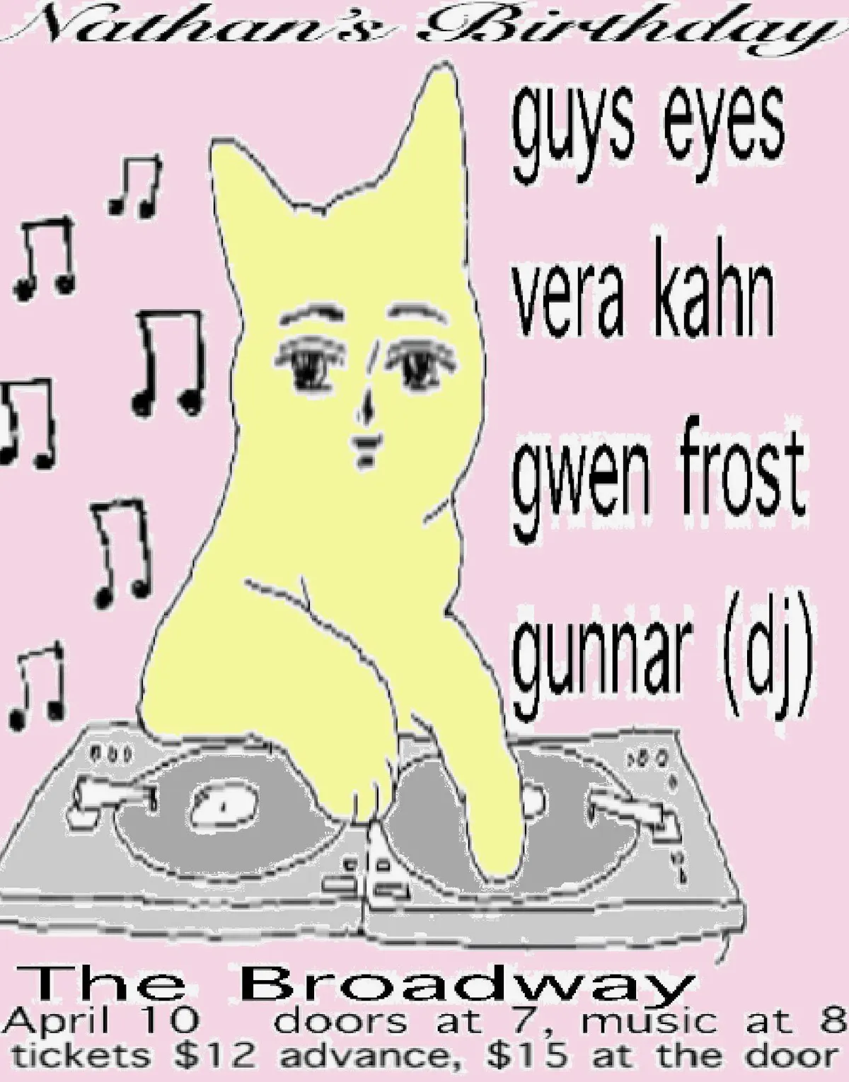 Nathans birthday at The Broadway with Guys Eyes, Vera Kahn, and Gunnar 7PM Doors 21+ $12 in adv // $15 dos