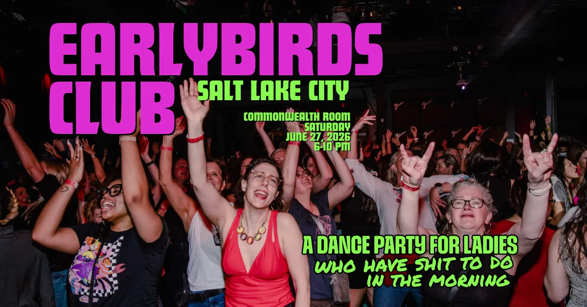 Earlybirds Club is a dance party designed for women, trans, and non-binary folks that starts at 6pm and ends at 10pm - because we have shit to do in the morning! Our DJ spins music from the 80s to 2000s, including pop, hip-hop, new wave, and R&B - you know, the songs you sing at the top of your lungs when no one's home! Earlybirds Club is more than a fun night out, it's a supportive space where kindness, good vibes, and sensible footwear rule, and 10% of proceeds always benefit a local non-profit. Come as you are - there's plenty of room on the dance floor for everyone. 10% of ticket proceeds benefits Journey of Hope, which provides case management services, mentoring, and social advocacy for women, girls, and LGBTQIA+ in Salt Lake City and across Utah. Note: By purchasing these tickets, you are consenting to be photographed for promotional purposes. People of all backgrounds and identities are encouraged to attend all of our events.