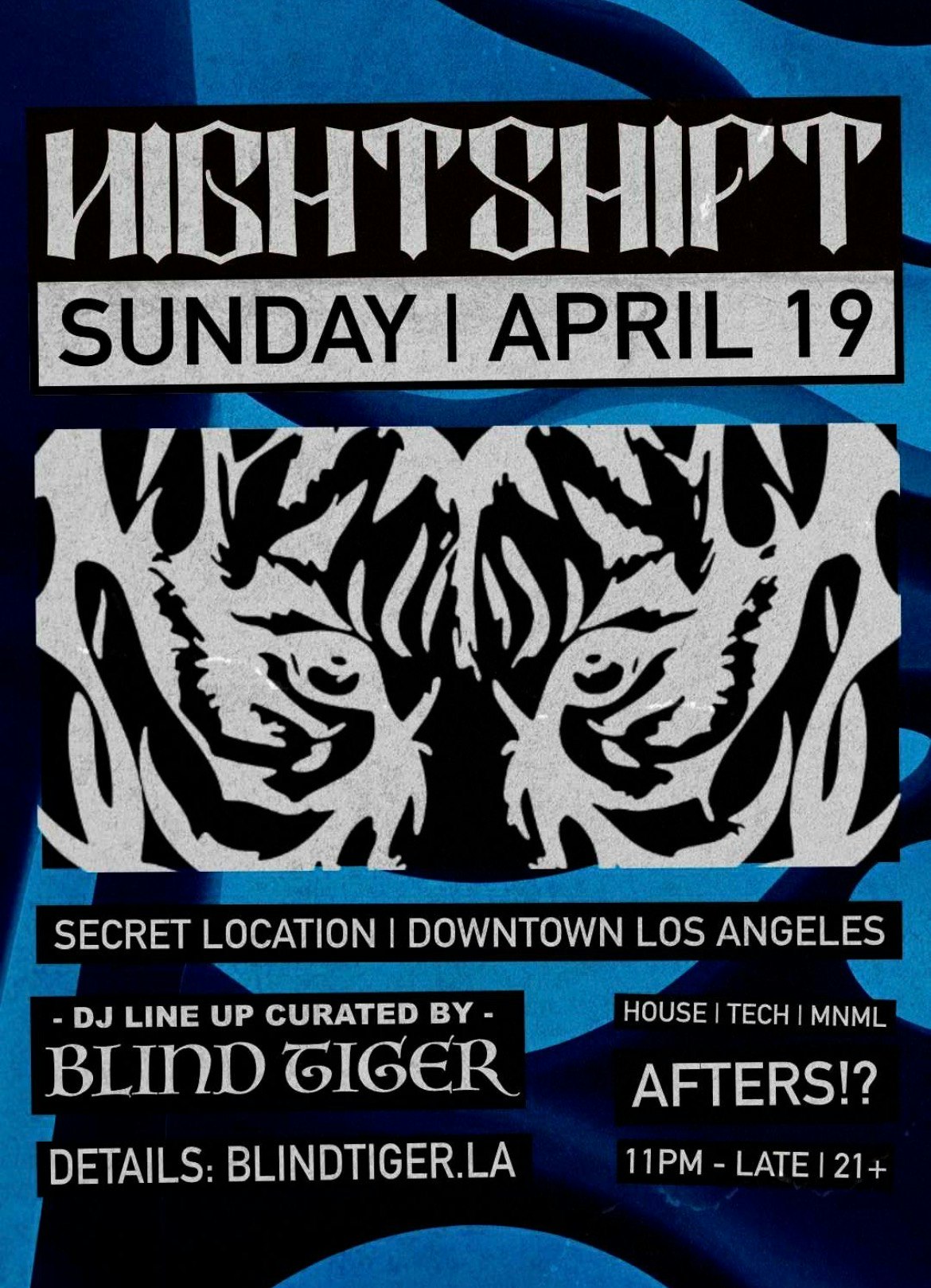 Secret DJ lineup curated by Blind Tiger artist collective. It doesn’t matter who’s behind the decks, expect to hear music that’ll make you want to dance no matter the day or time.