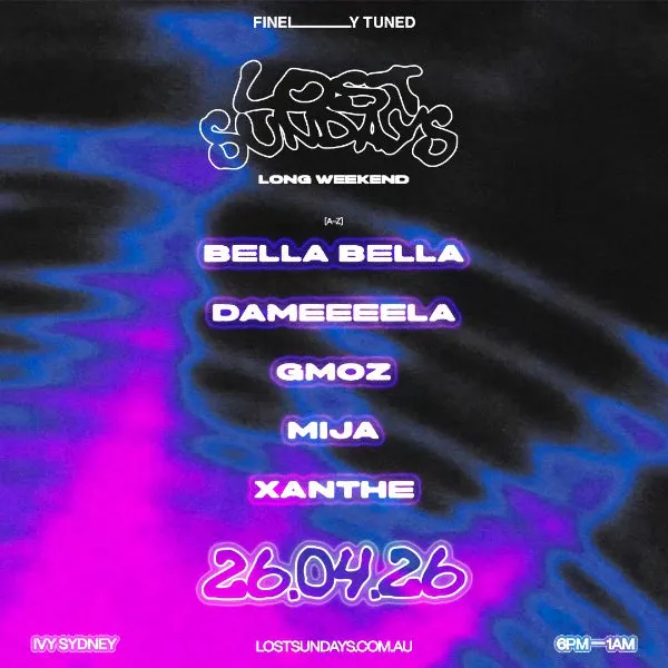 We're in for an extended session for the long weekend as Mija, Dameeeela, GMOZ, Bella Bella and Xanthe take over Lost Sundays on Sunday, April 26.