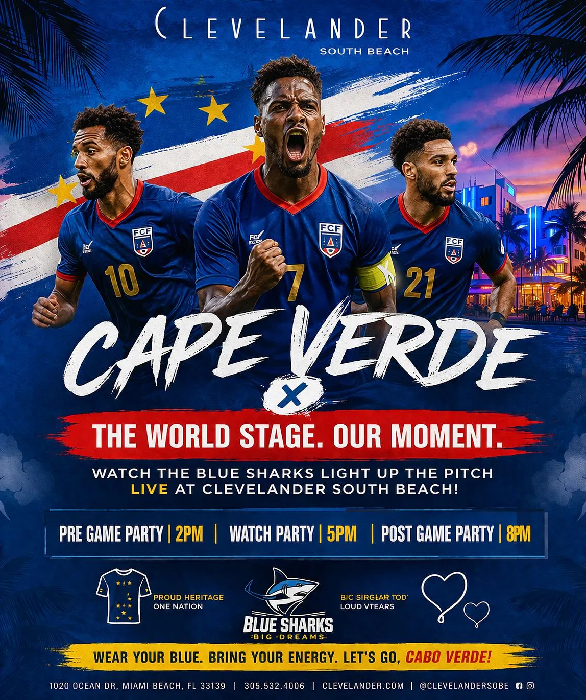 - Experience the excitement of international soccer with a Cape Verde Watch Party at Clevelander South Beach. Watch the match live on big screens surrounded by passionate fans, festive energy, and nonstop entertainment.