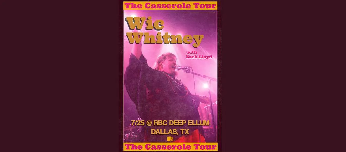 Wic Whitney is at RBC Deep Ellum in Dallas, TX on July 25th with special guest Zach Lloyd! This is an 18+ event. Valid ID required for entry. Persons aged 18-20 subject to $5 minor fee upon entry. All bags subject to search.