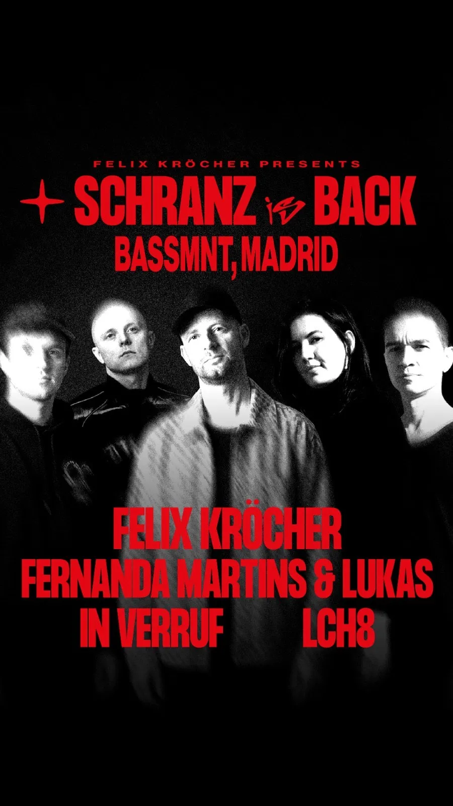Con la gira Schranz Is Back 2026, FELIX KRÖCHER devuelve al Bassement de Madrid la energía de una generación entera, junto a 12 leyendas que definieron esa época.