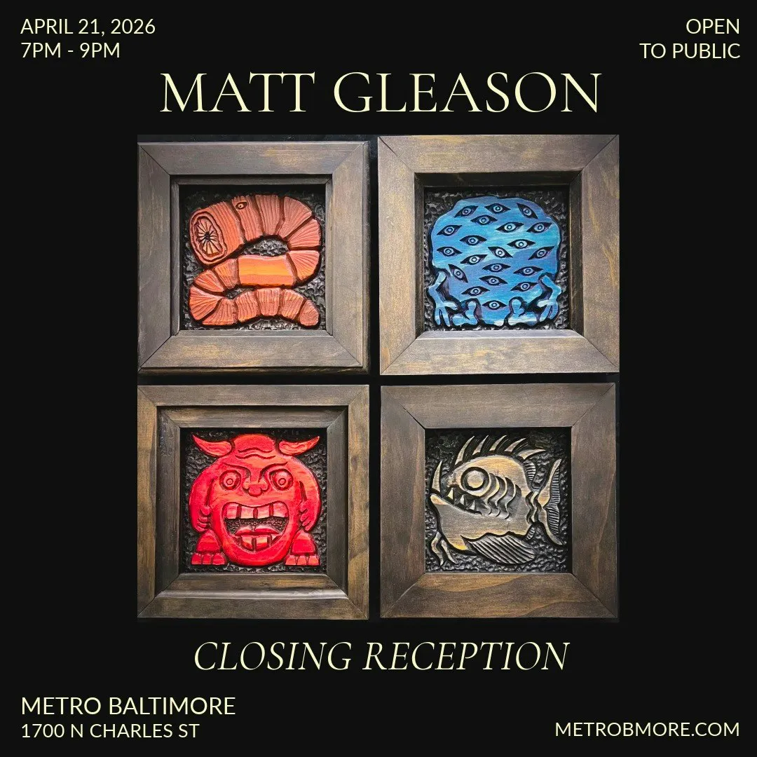 MATT GLEASON New Woodworks Closing Reception Tuesday April 21, 2026 7:00 PM - 9:00 PM Free, Open to the public Presented by Metro Gallery LLC. All ages