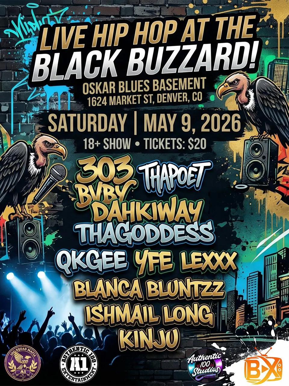 Authentic 100 Entertainment Presents a Night of Denver Hip-Hop + R&B feat. 303 Bvby, Thapoet, Dahkiway, ThaGoddess, Qkgee, Y.F.E., Lexxx, Blanca Bluntzz, Ishmail Long & KinjuSaturday, May 9th 2026 | Doors @ 7PM | Show @ 8:00PM