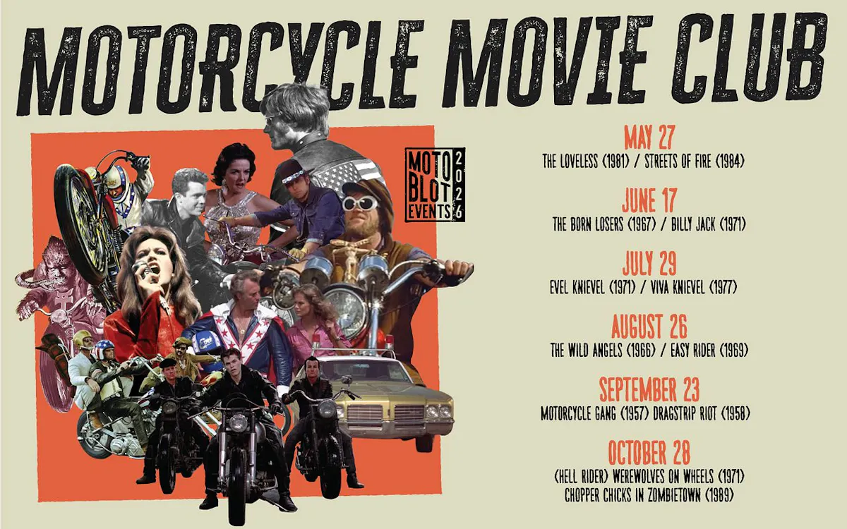 MOTORCYCLE MOVIE CLUB Membership offers a season pass to all 6 nights for $50 (20% off the single day admission) and members receive a MMC jacket patch