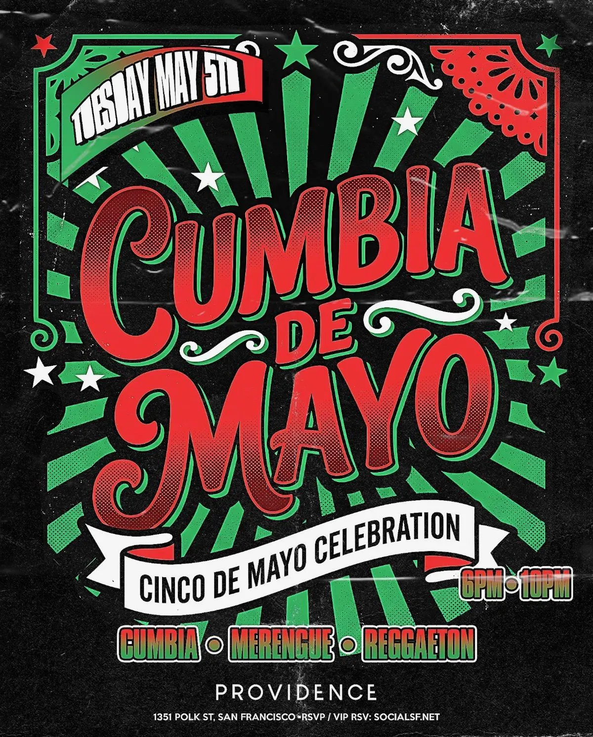 CUMBIA DE MAYO : CUMBIA • MERENGIE • REGGAETONTurn the lights down and the music up. CUMBIA • MERENGIE • REGGAETON — all in one unforgettable night. 🎶✨