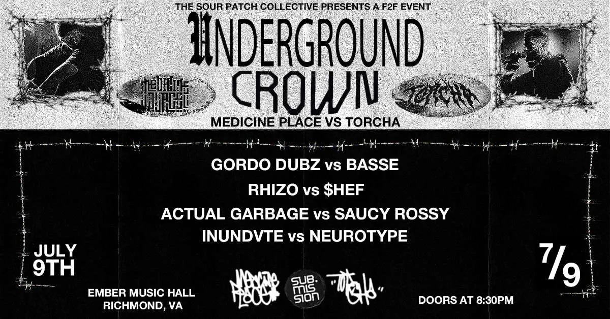 Sour Patch Collective presents Underground Crown featuring Medicine Place vs Torcha at Ember Music Hall on July 9, 2026. Experience two rising forces in underground bass music going head-to-head for one massive night of deep dubstep, heavy low-end pressure, and cutting-edge sound design. Medicine Place brings hypnotic, dark bass energy while Torcha delivers raw UK-inspired underground heat. Doors open at 8:30PM, secure your tickets early.