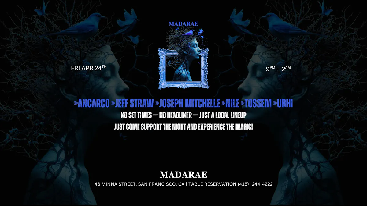 No set times, no headliners! Come support the night & experience the magic at MadaRae San Francisco