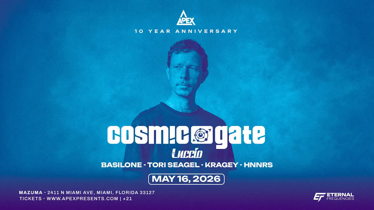 10 years of music, moments, and community. Celebrate with Apex Presents on May 16 featuring COSMIC GATE