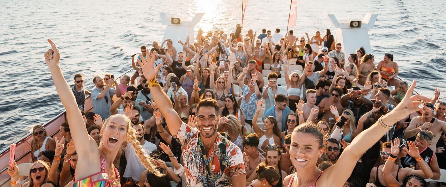 Departing from San Antonio, the boat party is from 18:00 to 21:00 (17:00-20:00 in September) every Saturday and includes a welcome drink + 2 beers or glasses of sangria.