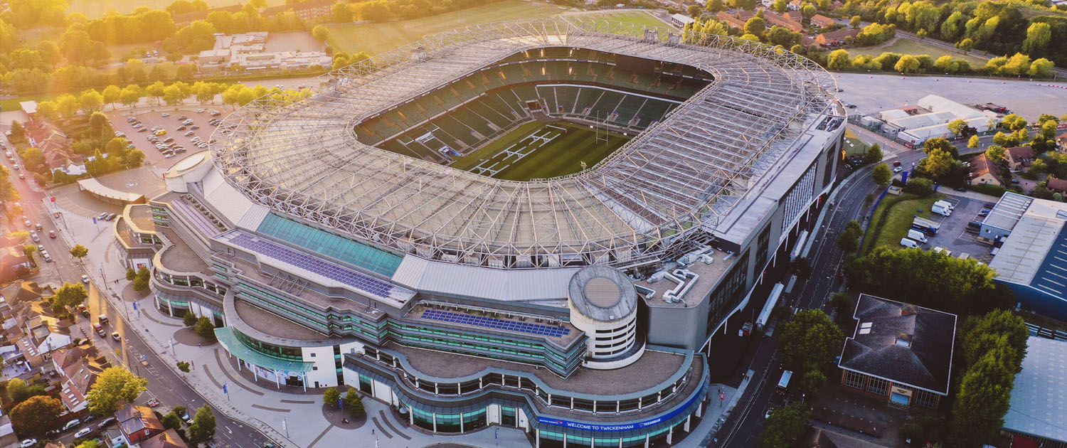 Twickenham Stadium of Twickenham, south-western London in England, is a purpose built rugby union stadium. The Rugby Football Union, English rugby union governing body, owns and holds its headquarters at the stadium.