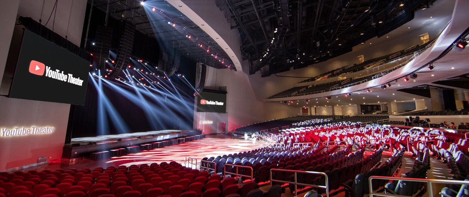 YouTube Theater is an intimate venue, offering seating for up to 6,000 guests. At 227,000 square feet, the theater will act as a new creative oasis for Angelenos. The three-story venue combines state-of-the art technology with luxury guest amenities and features a premium sound system by L-Acoustics. YouTube Theater is not only unique in offerings, but it is also an architectural wonder. Embedded under the same sloping roof canopy as SoFi Stadium and American Airlines Plaza, YouTube Theater was developed by Los Angeles Rams Owner/Chairman E. Stanley Kroenke and will host a multitude of events, including concerts, comedy shows, esports tournaments, award shows, community gatherings and more.
