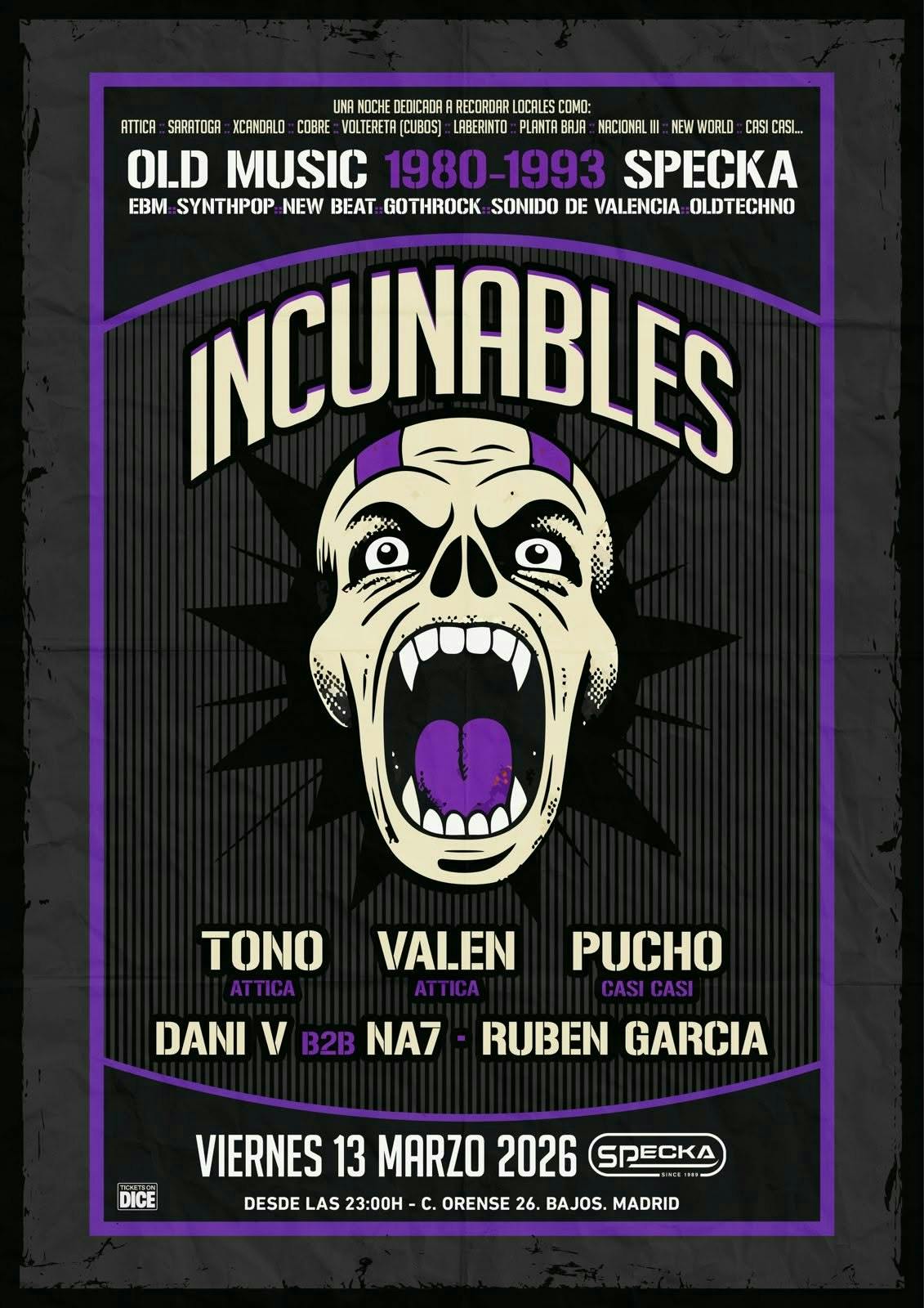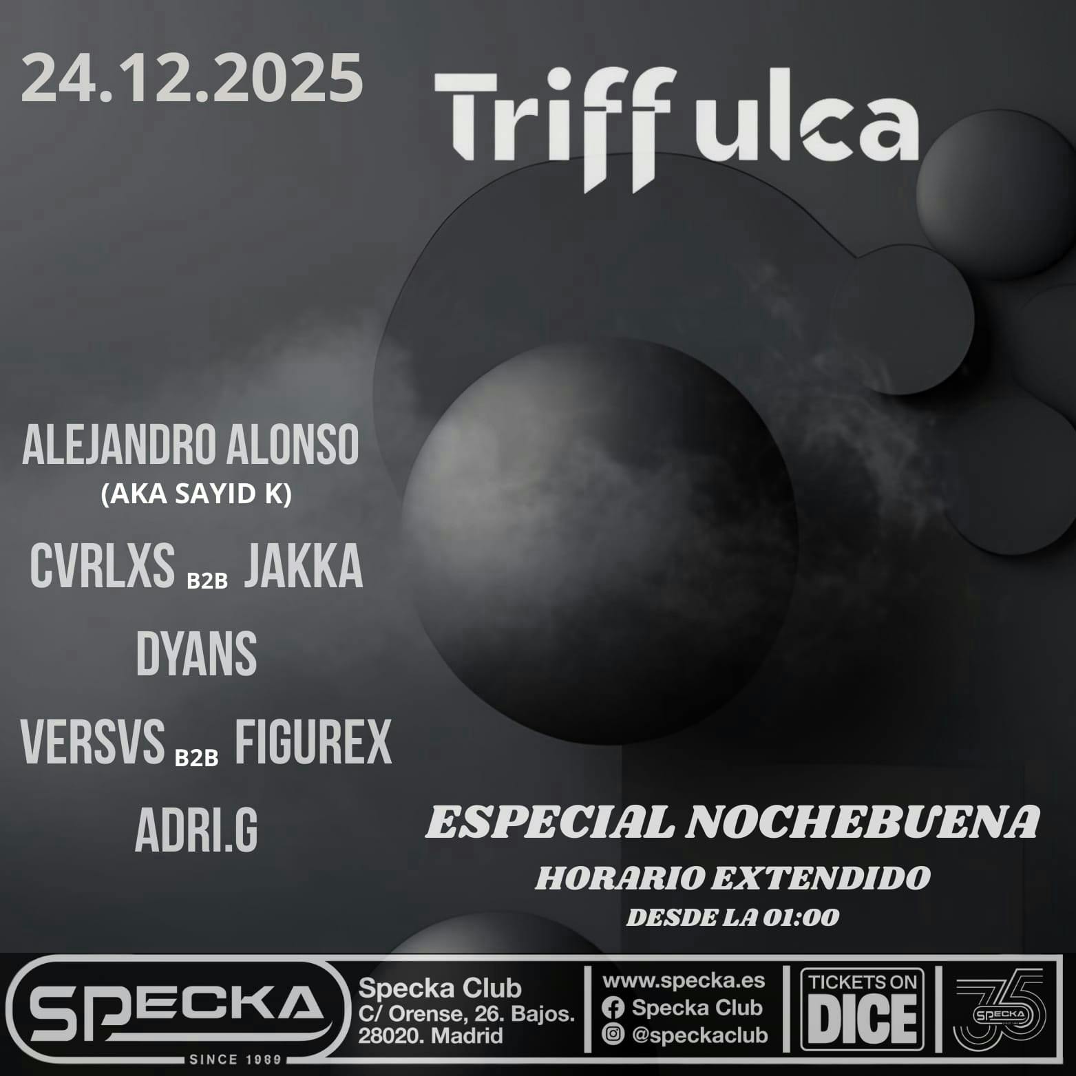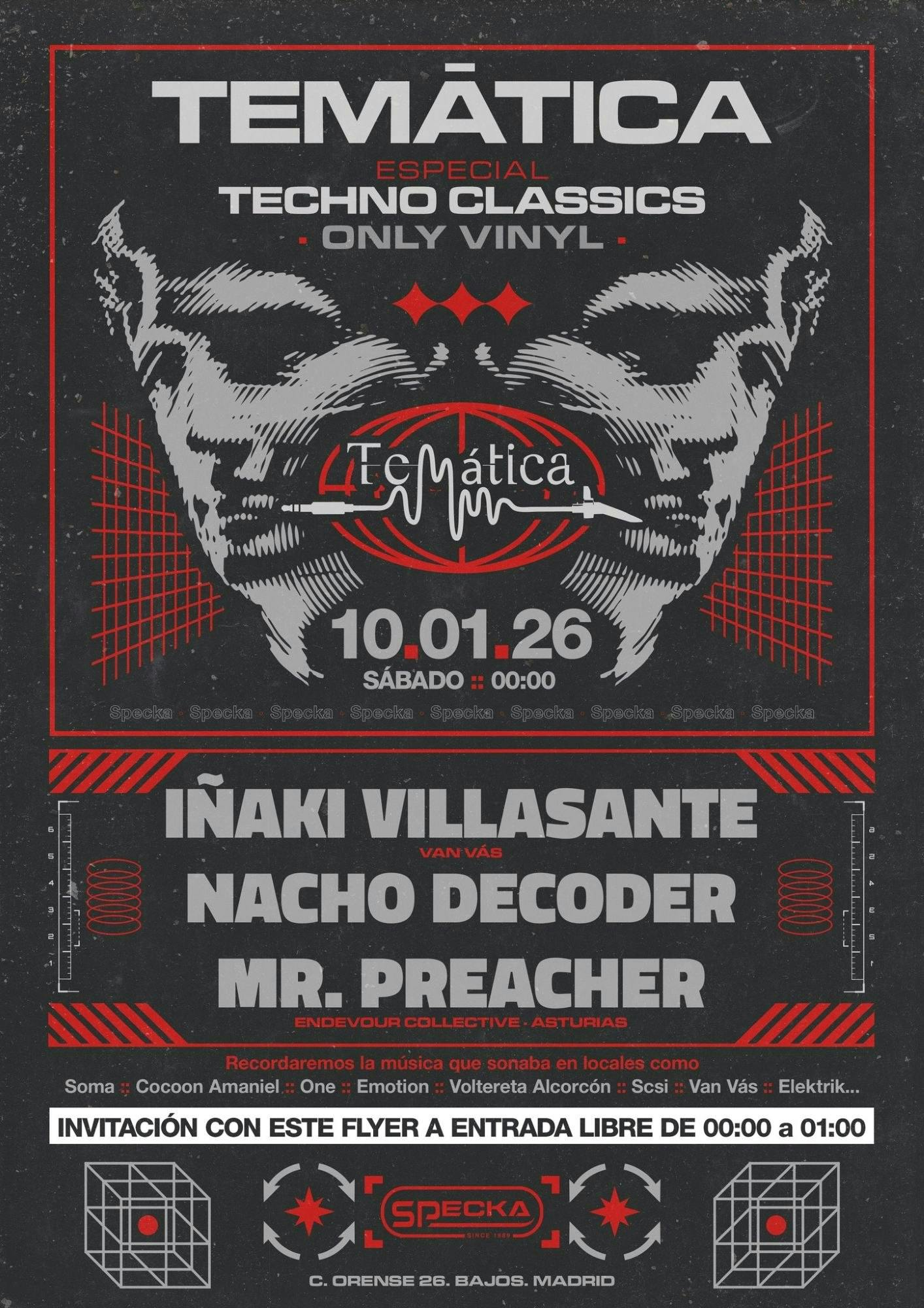 Specka es uno de los pilares principales de la cultura de club en Madrid. Abierto de manera ininterrumpida desde 1989, el club ha ido transformando su sonido a lo largo del tiempo: desde los inicios con el post punk, new wave y EBM, pasando por el trance y el techno hasta hoy.