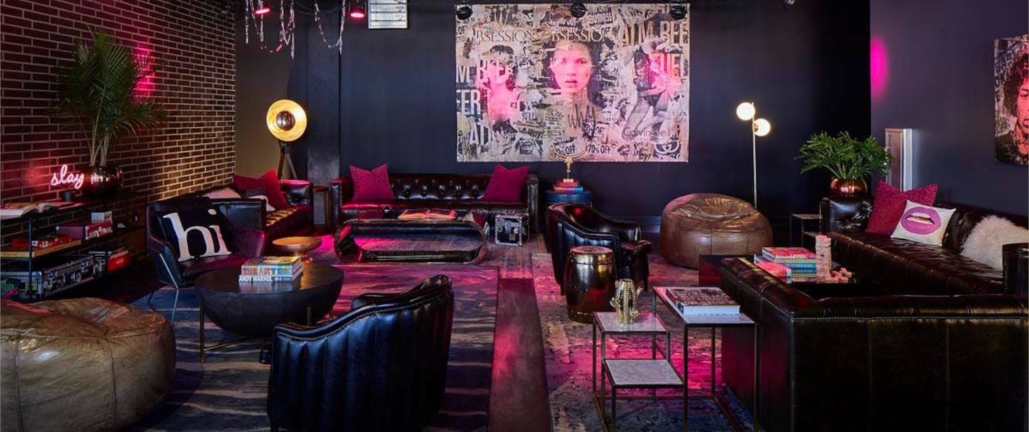Hot breakfast is available for a fee. Other amenities include a 24/7 fitness center and a funky lobby lounge with a bar. Activities include foosball and shuffleboard. Pets are welcome for a fee.