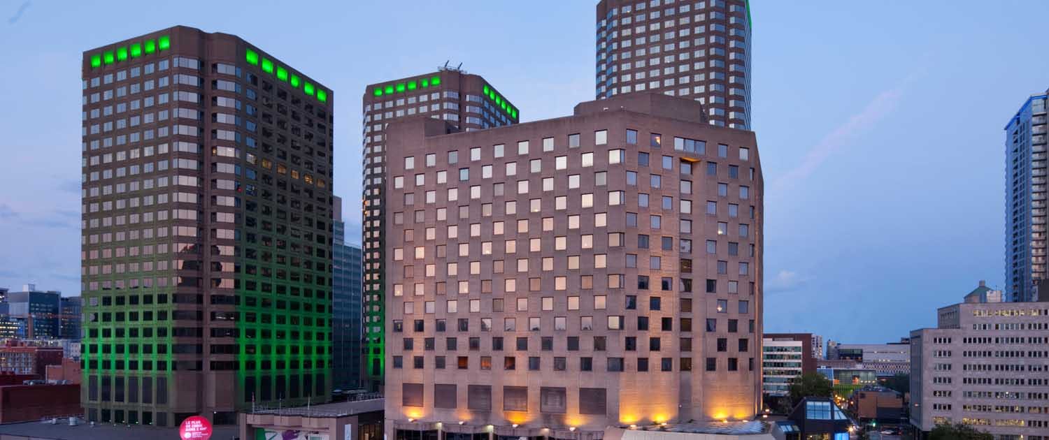 The DoubleTree by Hilton Montreal is near Complexe Desjardins and features on-site dining and events hall. They are known for many events they throw throughout the holidays of the year.