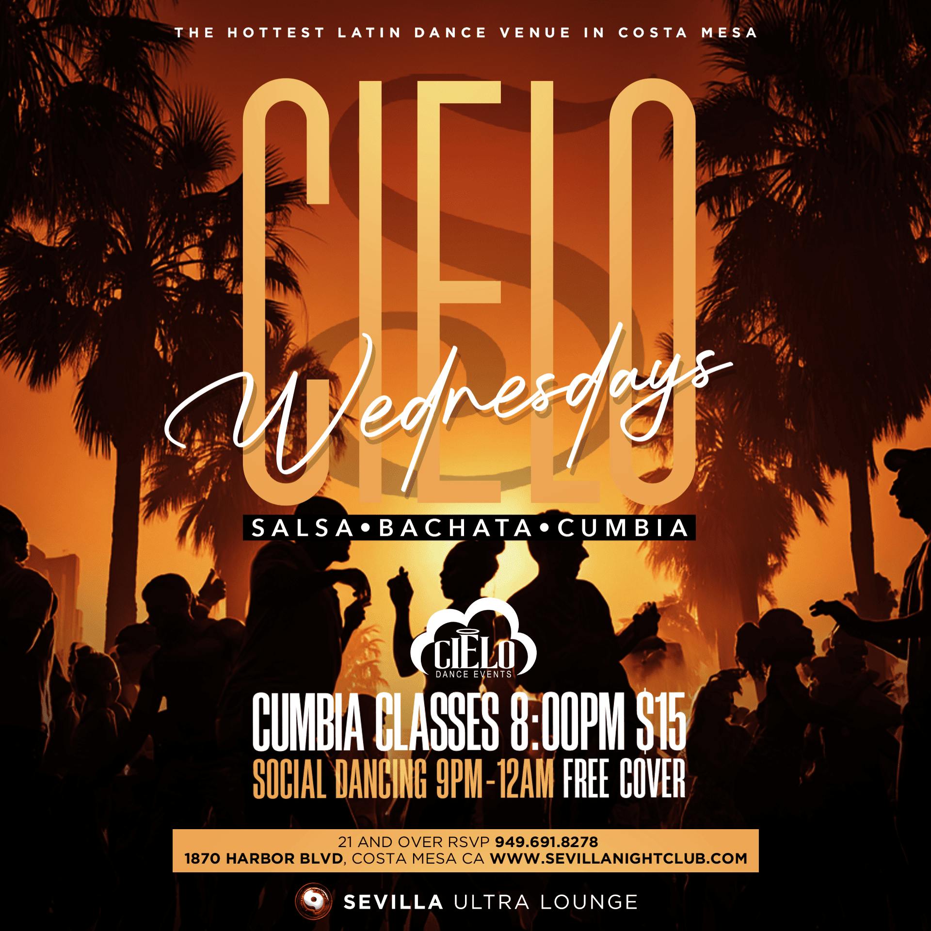 Sevilla Nightclub is the most anticipated nightlife venue to open its doors in Orange County in 2020. This stand-out nightlife destination delivers a unique atmosphere with the best in live entertainment including turn-table DJ's, live bands, dance instructors and more! The nightclub space offers an intimate ambiance including a roomy dance floor, plush lounge area, top of the line sound/lighting system, wrap-around bar and VIP bottle service amenities. Early arrival, guest list and VIP bottle service is always recommended. We look forward to welcoming you and providing you with the best nightlife experience in Orange County!